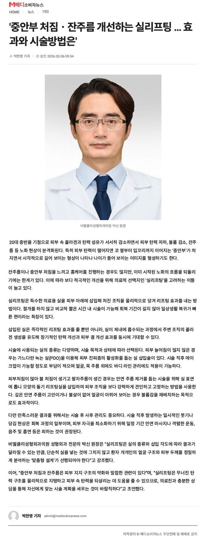 [언론보도] 중안부 처짐·잔주름 개선하는 실리프팅…효과와 시술방법은