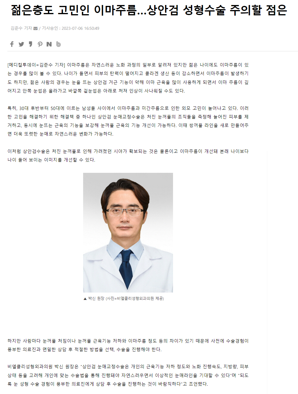 [언론보도] 젊은층도 고민인 이마주름…상안검 성형수술 주의할 점은