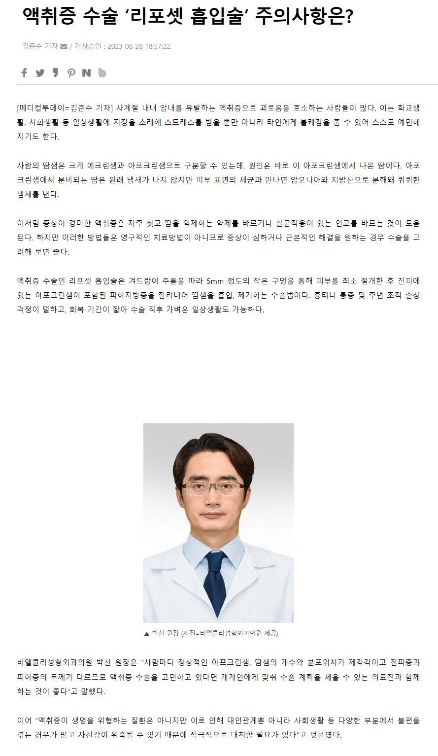 [언론보도] 액취증 수술 ‘리포셋 흡입술’ 주의사항은?