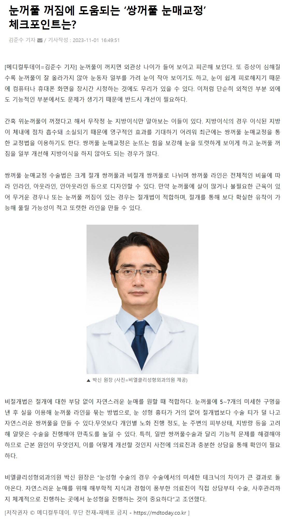 [언론보도] 눈꺼풀 꺼짐에 도움되는 ‘쌍꺼풀 눈매교정’ 체크포인트는?