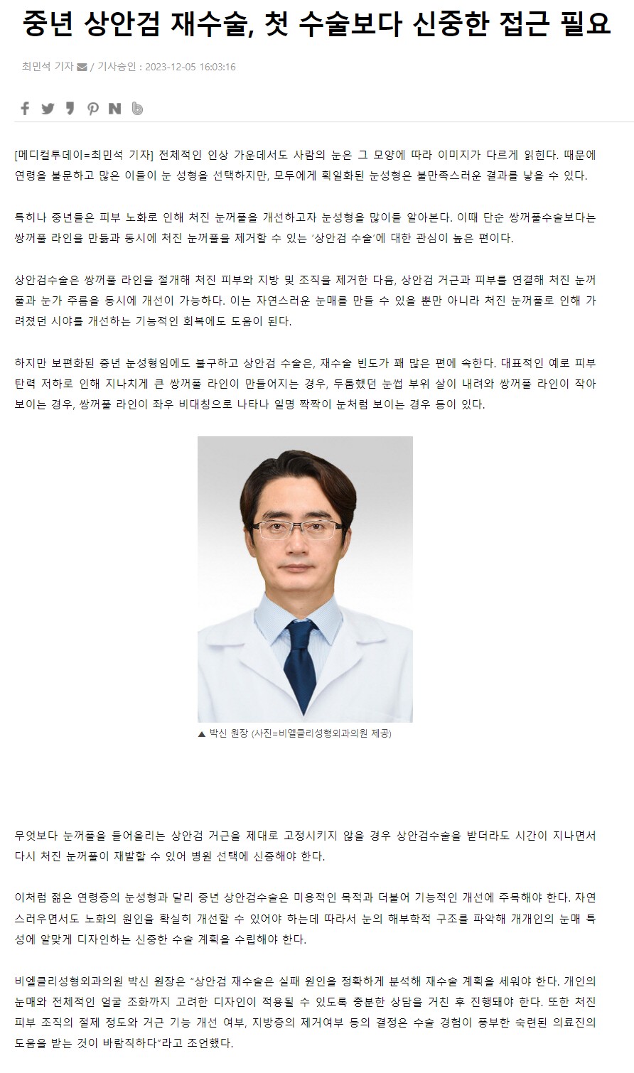 [언론보도] 중년 상안검 재수술, 첫 수술보다 신중한 접근 필요