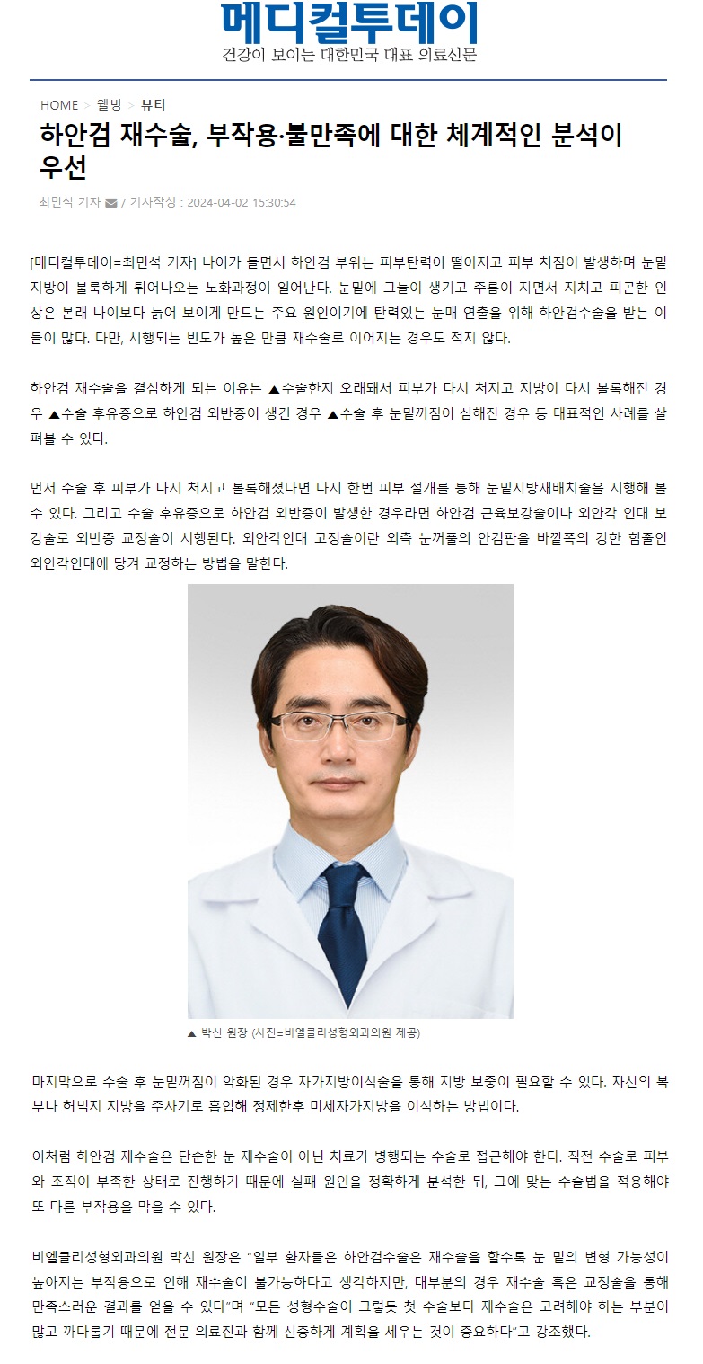 [언론보도] 하안검 재수술, 부작용·불만족에 대한 체계적인 분석이 우선