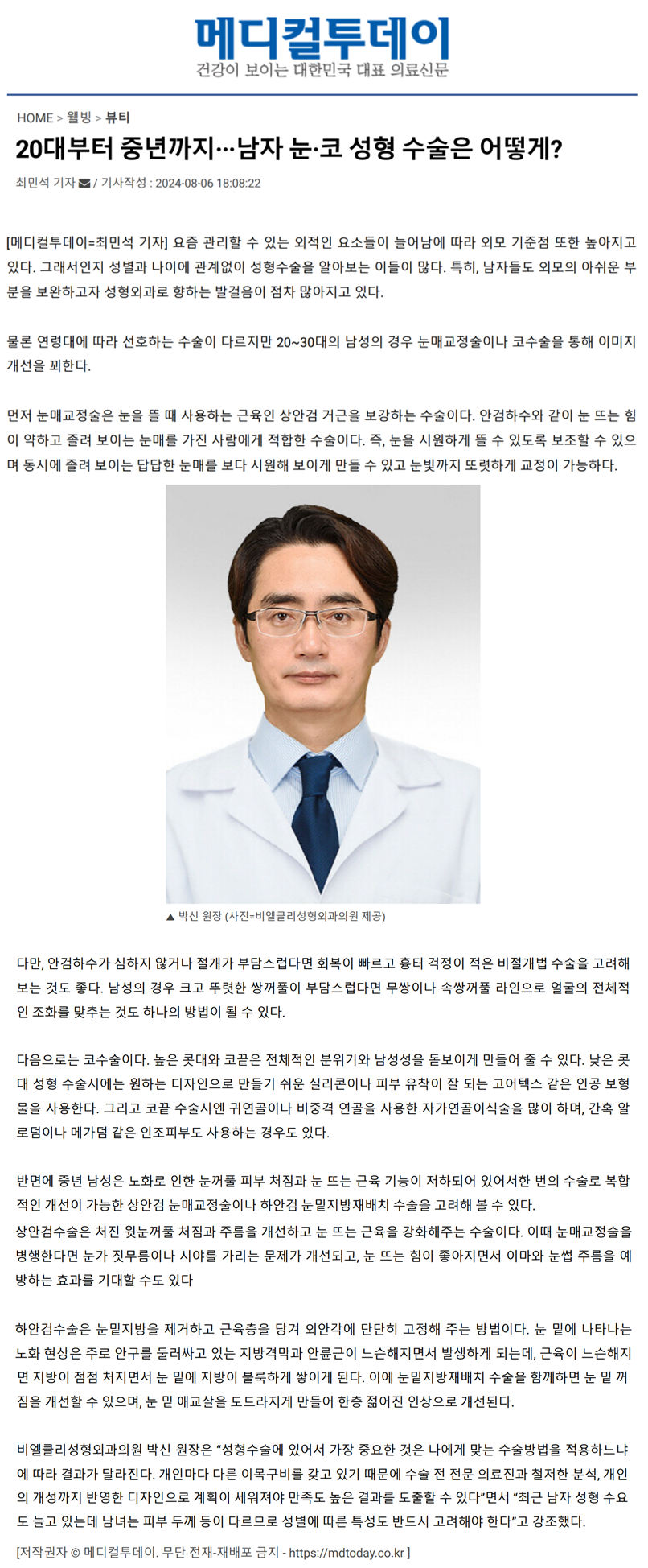 [언론보도] 20대부터 중년까지···남자 눈·코 성형 수술은 어떻게?
