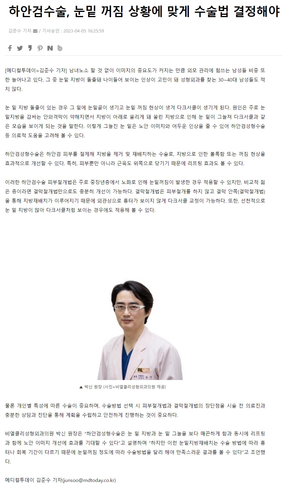 [언론보도] 하안검수술, 눈밑 꺼짐 상황에 맞게 수술법 결정해야