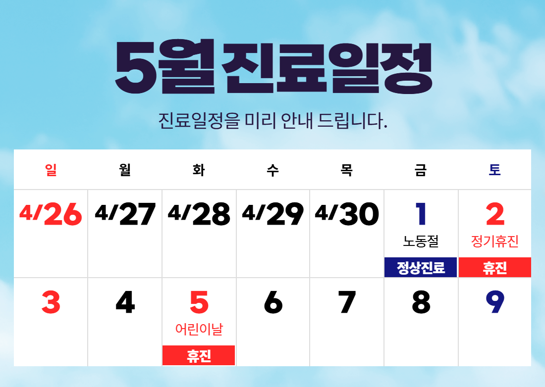 2026년 5월 진료일정 안내 드립니다.
