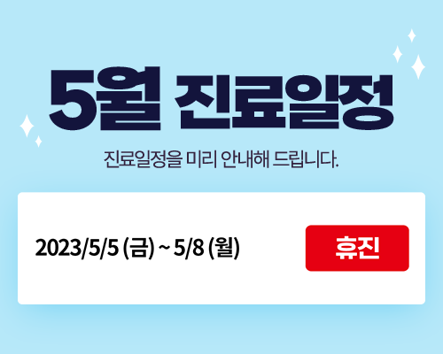 2023년 5월 5일부터 5월 8일까지 휴진합니다.