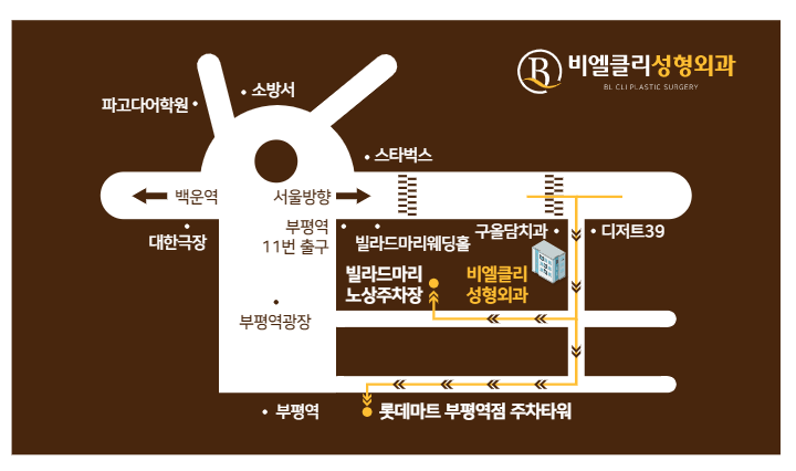 이용주차장1. 빌라드마리 웨딩홀 지상주차장 : 1시간 무료주차, 수술당일은 무료주차, 토요일은 주차불가 2. 빌라드마리 웨딩홀 건물 지하주차장 : 지상주차장이 만차이거나 토요일 주차시 주차비 3,000원 이내 지급해드립니다.3. 롯데마트 부평역점 주차장 : 웨딩홀 주차장이 만차인 경우나 토요일 주차시 주차비 3,000원 이내 지급해드립니다.