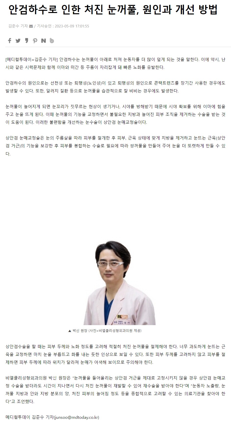 [언론보도] 안검하수로 인한 처진 눈꺼풀, 원인과 개선 방법